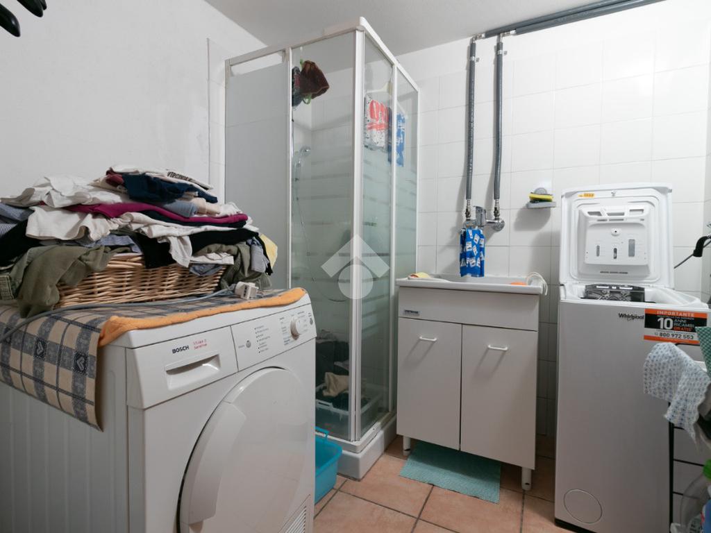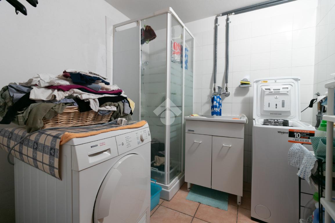 Garage, pratica lavanderia e tavernetta con bagno, ambiente versatile ideale come spazio hobby, studio, palestra o terza camera.